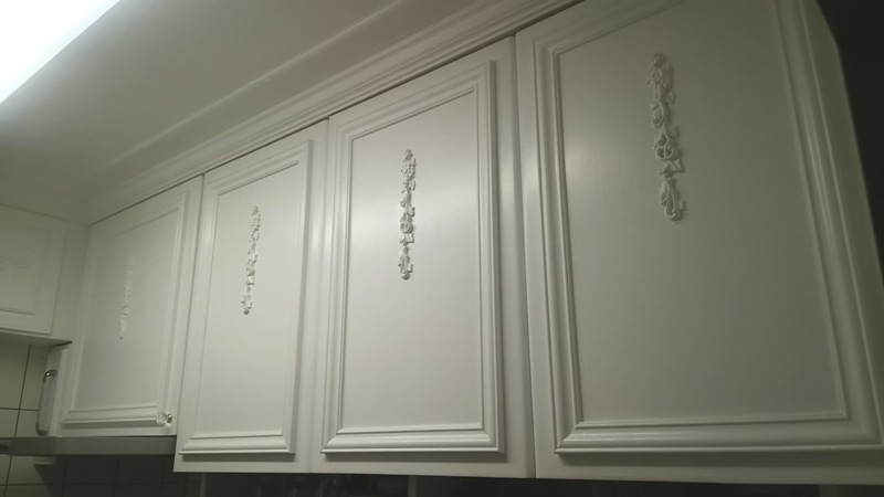 そして、食器棚、吊り戸棚、キッチンのすべての扉のリフォームを行いました。
