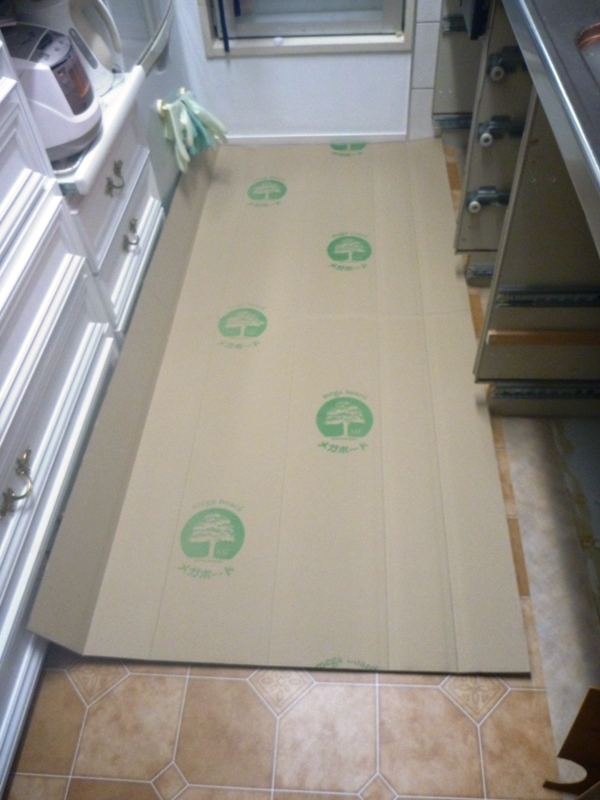 こうして、傷を当てたり汚さないように手始めに養生を開始します。
