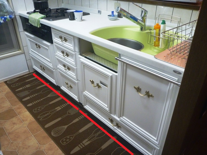 それを業者さんに伝えると、「材料がない」と言うので、「では私が材料を買って行きます」と話したら、今度は「工事外になる」「キャビネットの高さが本来の高さ」との事でした。