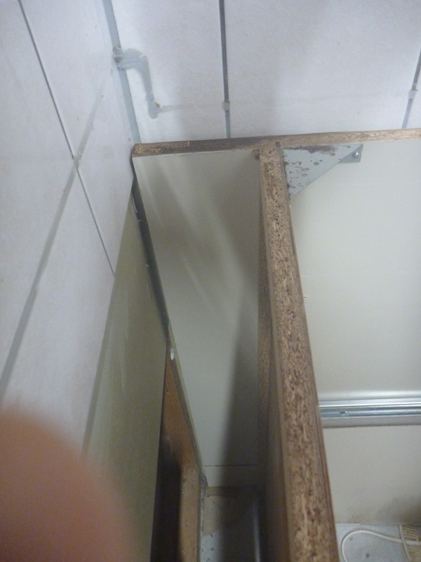 以前はなかったのでおかしいないなあと思って調べてみたら、なんと真ん中のキャビネットが奥の方へ7ミリずれている事が判明しました。