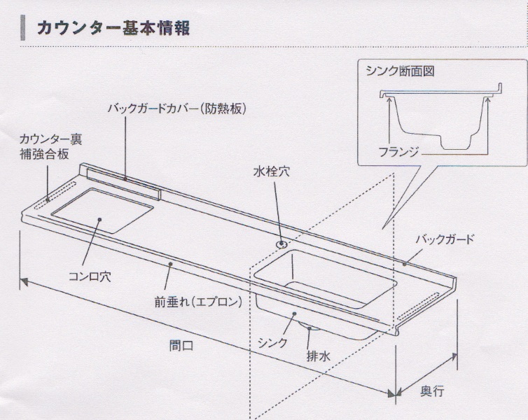 今回の記事では、キッチンの話ですのでキッチンの人造大理石と言えばカウンタートップになります。