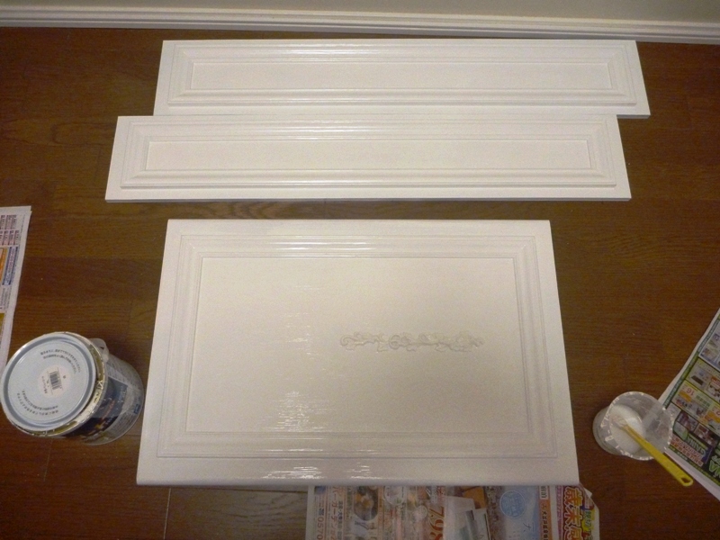 補強板は、見える部分のみ白の塗装をしておいて乾燥した後で設置しました。