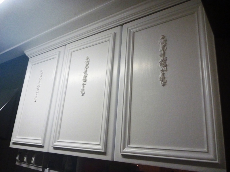 25ミリくらいリフトアップして、戸棚の上に27ミリ×27ミリの角材を張り付けて、天井廻りを付けました。