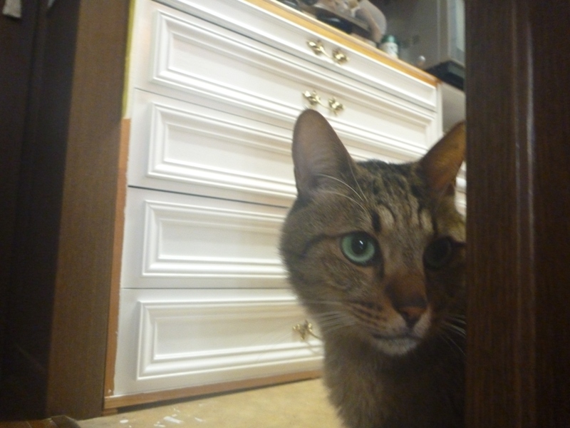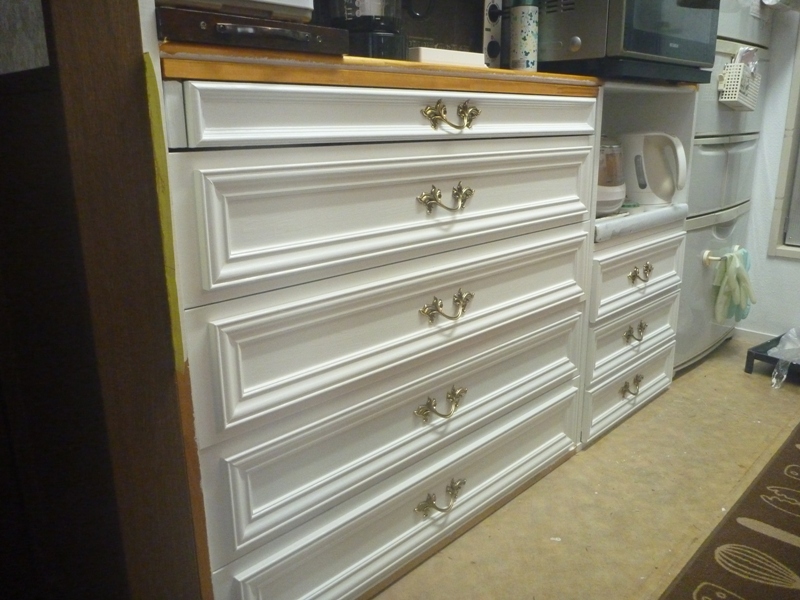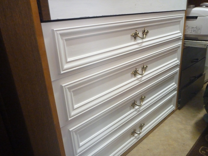 一番上の引き出しは、まだ塗装中ですし、取っ手もまだ付けていません。