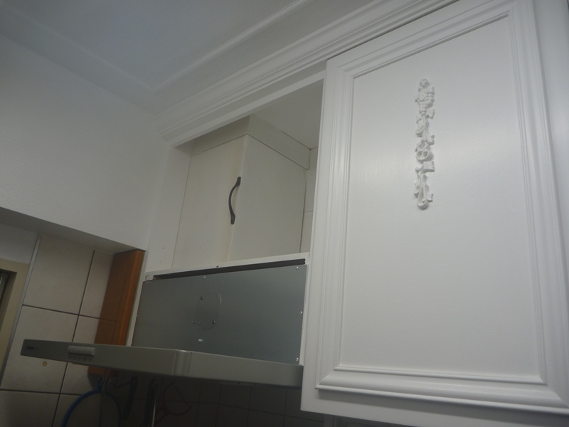 さて、昨日と一昨日にレンジフードの上に戸棚と扉を作りました。