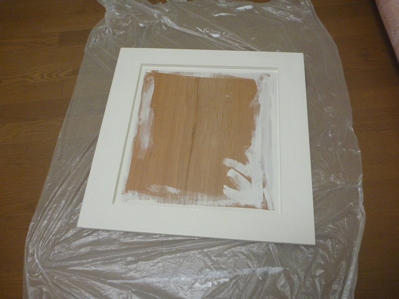 基本的に扉はスプレーで塗装するのですが、扉の真ん中をホワイトのプリント合板を使用した為、この合板にはウレタン塗料のスプレーでも乗らないのが意外でしたので、水性塗料のスプレーでも乗りません。