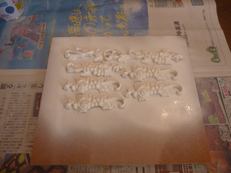 塗料の表面がデコボコしていますから、後に紙やすりで整えてから水性塗料のスプレーで均一に塗装してから完成になります。