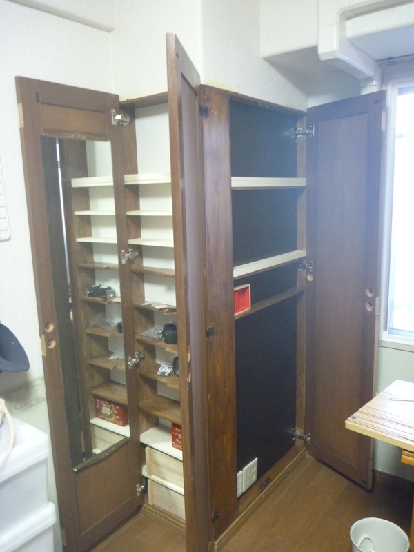 さて、話変わりますが、2016/07/04の時点でもともと奥行が60センチもあるタンスを下写真にある右の壁と同じ位にスッキリ収まる様に奥行が44センチに背面をカットしたままだったのでした。