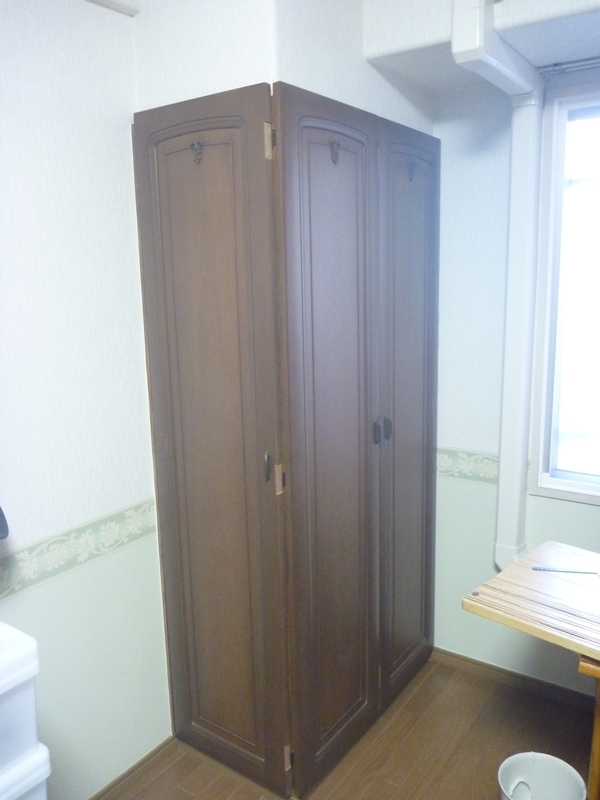 前回の写真と比べて頂きますと分かると思いますが、今回はタンス扉の上に廻しを取り付けました。
