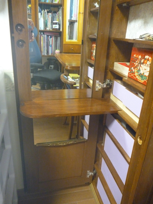 ですから、最初は、奥行が20~30センチの薄いタンスを作って、その中にドレッサーと言う計画だったのですが、急遽変更になりました。