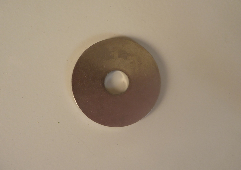 仕方がありませんので自作する事になり、M10×50×3.0(内径×外径×厚み)の物を購入して、21ミリ用のホールカッターを購入して電気ドリルで穴をあけました。