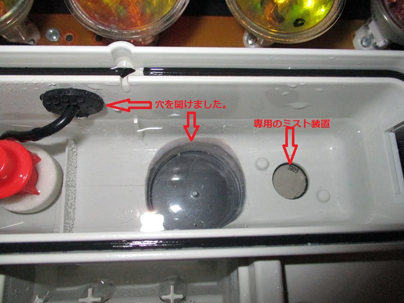 そして、水タンク サンプの中に市販のミストメーカーを入れますと、浅いので後17ミリ位深くしてやる必要があります。