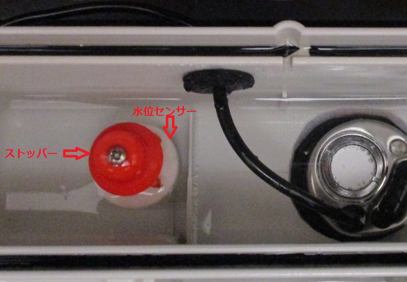 (水位センサーは、2種類の機材から成り立っており、フロートスイッチの様な感じで、