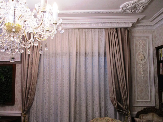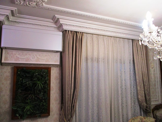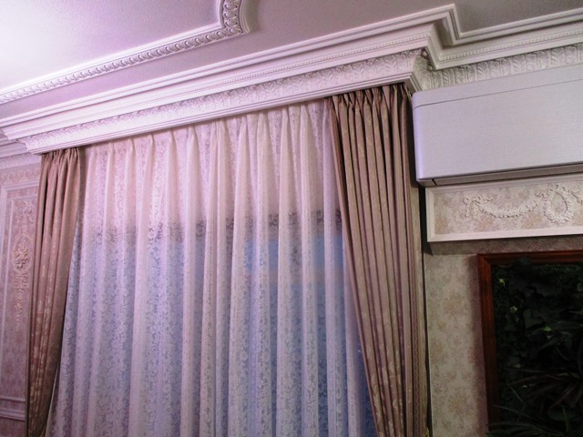 この美しいカーテンボックスに使われる3種類の3段モールディングは、スタイルK様の無償のアドバイスのお陰でした。大村様、有難うございます。