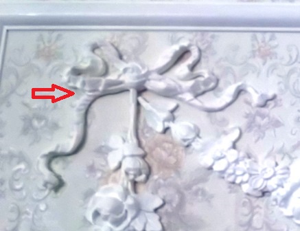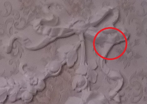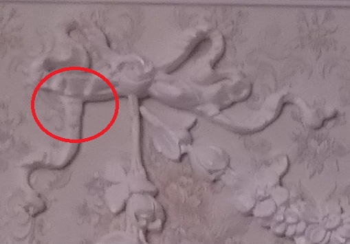 そして、右側のガーランドの左右のリボン〇印の部分に向き方に違和感があって、それも修正しました。