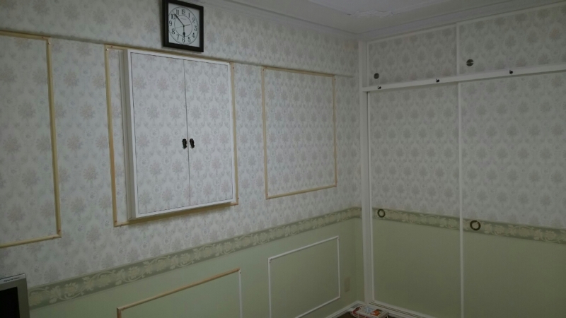 天井の内側のモールディングと、パネルの仮置きを行いました。