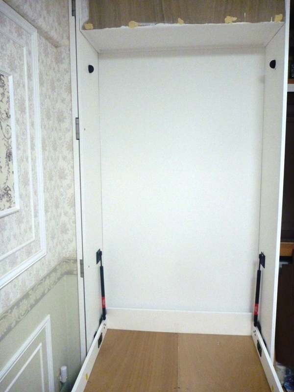 2台とも背面ボードに壁紙を貼り、そして、キャビネットに組み込みました。