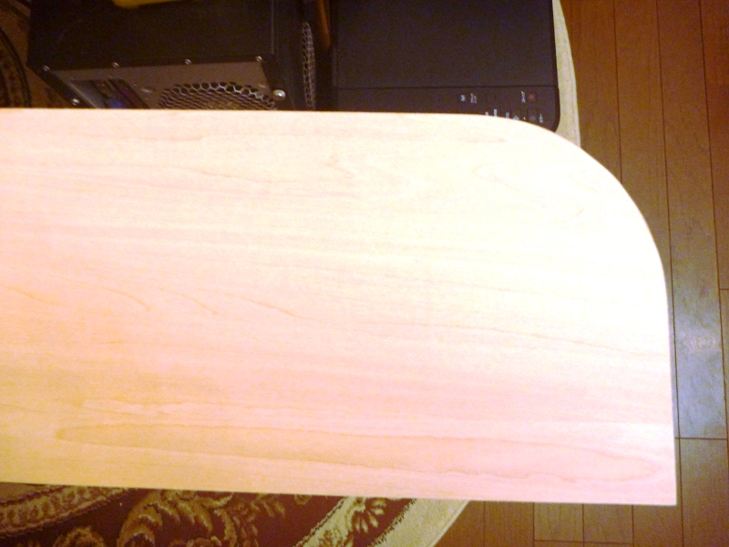 ジグソーで曲面カットして、木口テープを貼り、作業を終えたサイドレールです。