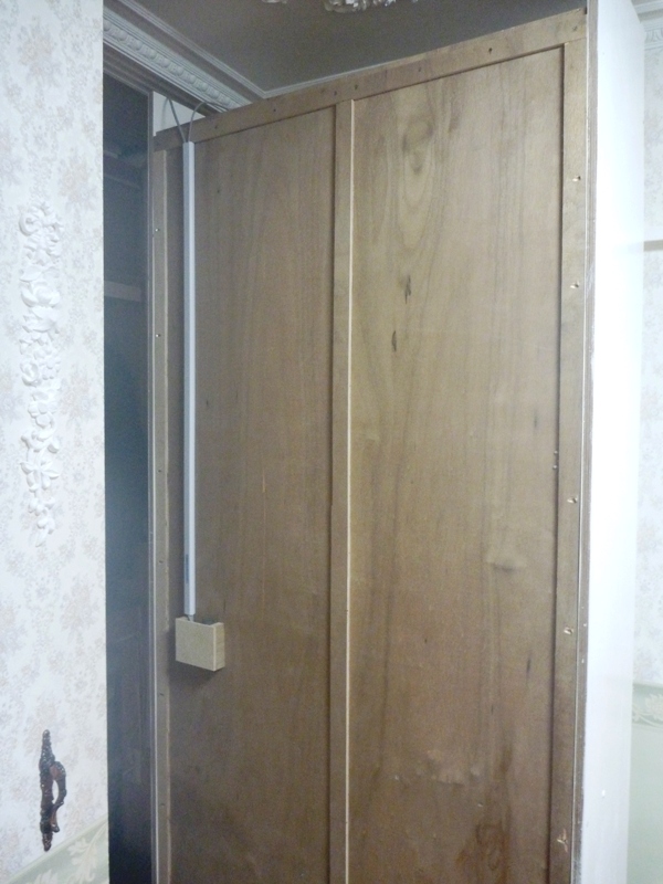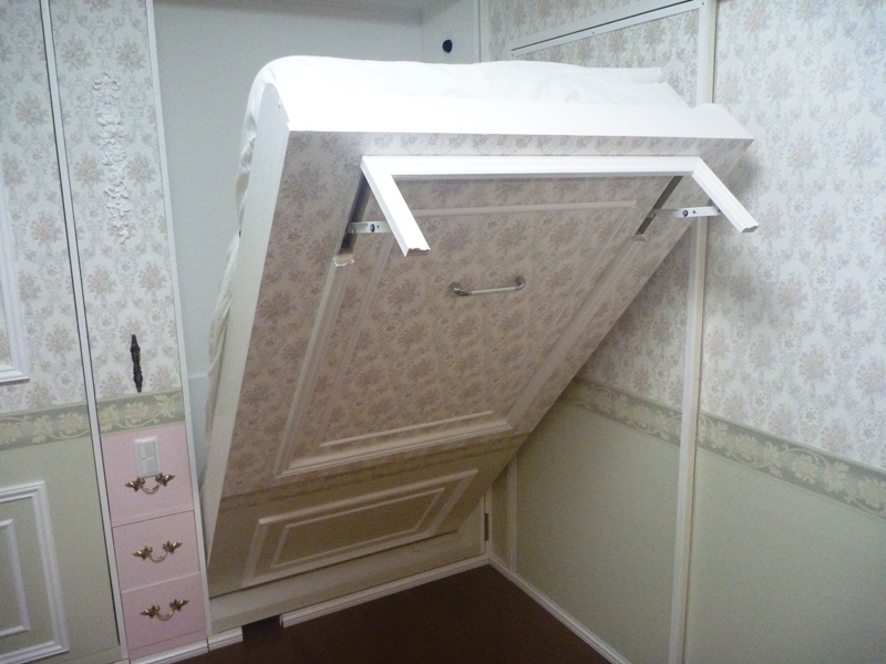 そうしないと、開く時に中のベッドが重さの為に丁番の反対側に傾いてしまう為、ベッドの木製サイドレールに傷を受けない様に防ぎます。