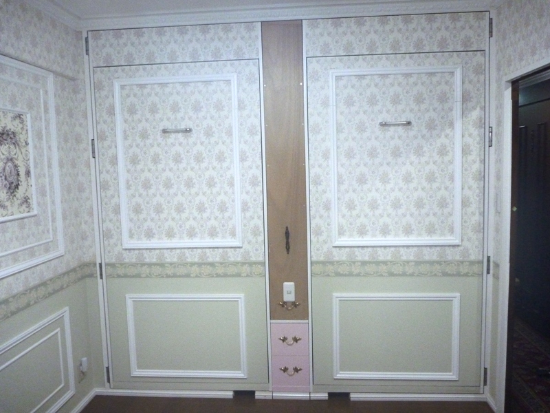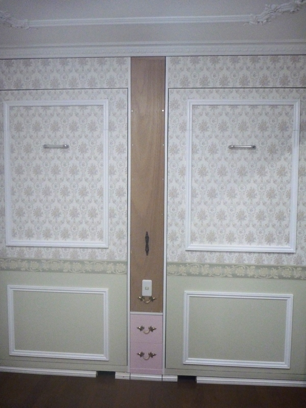 さて、本日にて二重廻りのモールディングが終わりましたので壁面収納ベッドが完成しました。