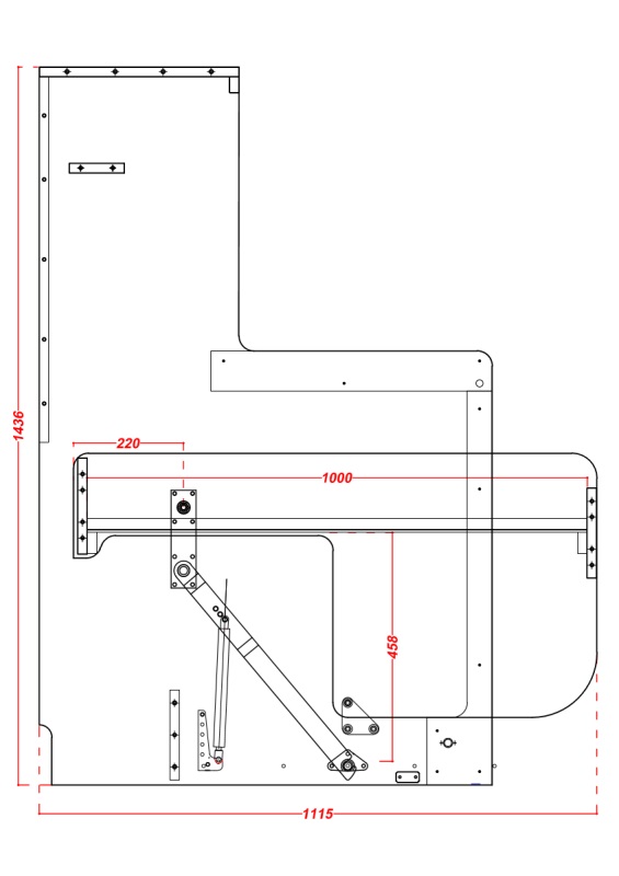 このマーフィーベッドは水平タイプで、ベッドが回転しますから下の所にある程度の隙間が必要なんです。
