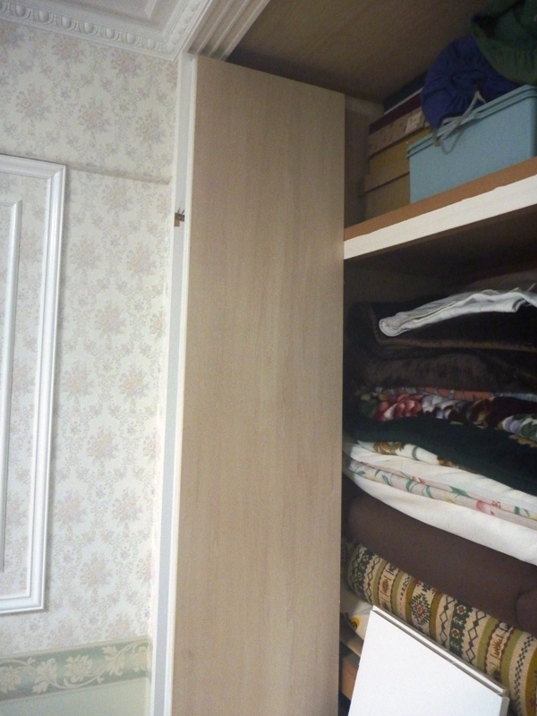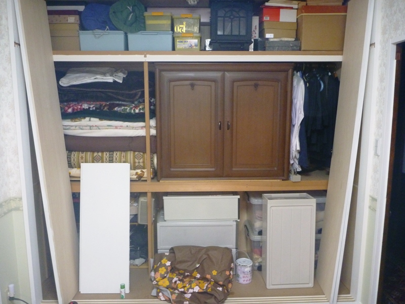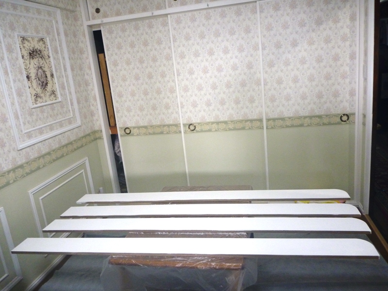 その為には、壁面収納ベッドが収まるスペースを先に確保する必要があり、40センチ分の押入れの棚を除く作業が必要になります。