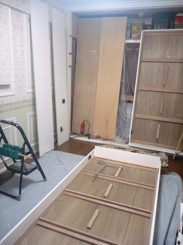 さて、今日からいよいよ本格的な壁面収納ベッドの工事に入ります。