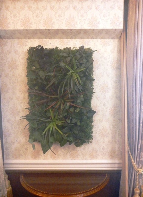 これが本物だったら凄いんですが、本物の植物を植えている壁面緑化と言ったら室外に見かける事はあるのですが、自分的には室内のものは滅多にお目にかかれません。