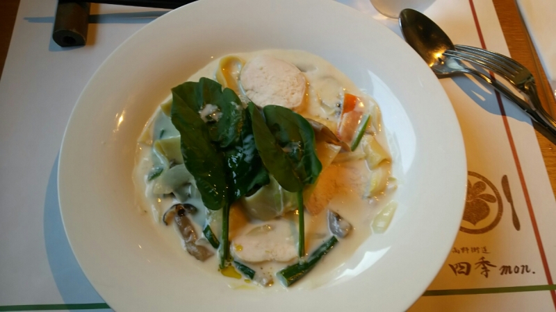 メインでは、私の場合 鶏ムネと青ネギのストラッチ(クリームソース、生不揃い麺)