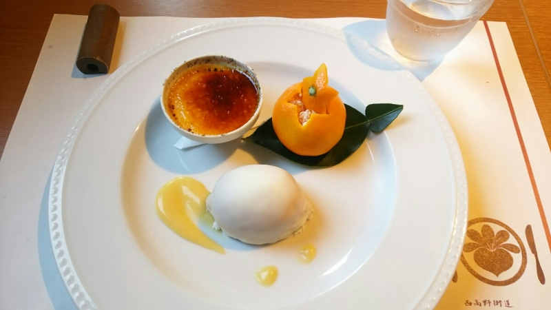 デザートは、左上 土ショウガのブリュレ 右 みかん