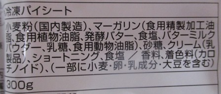 アップルパイを作るにあたってパイシートを購入したのですが、裏面を見て材料の内容を見るとマーガリン、ショートニングが使われていますねえ。