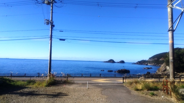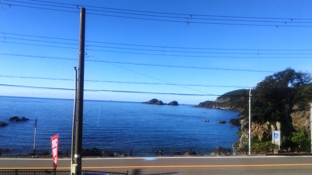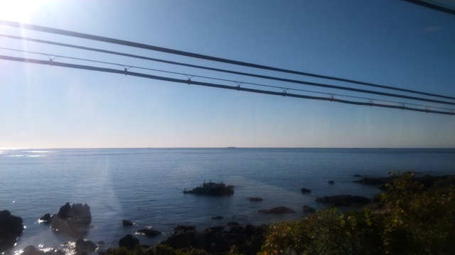 上記の写真は、大阪へ戻る時の特急くろしお号(オーシャンアロー283系)に乗車していて、和歌山県周参見町辺りの海を撮影しました。