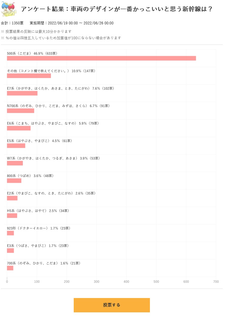 - 2022.06.24 車両のデザインが一番かっこいいと思う新幹線は?