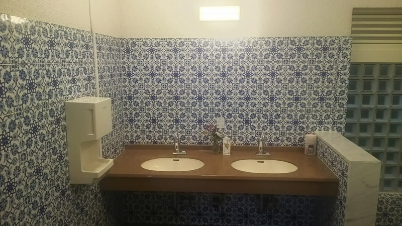 駐車場にあるお手洗いですが、タイルの模様が珍しいですね。