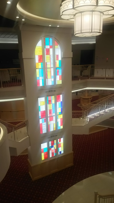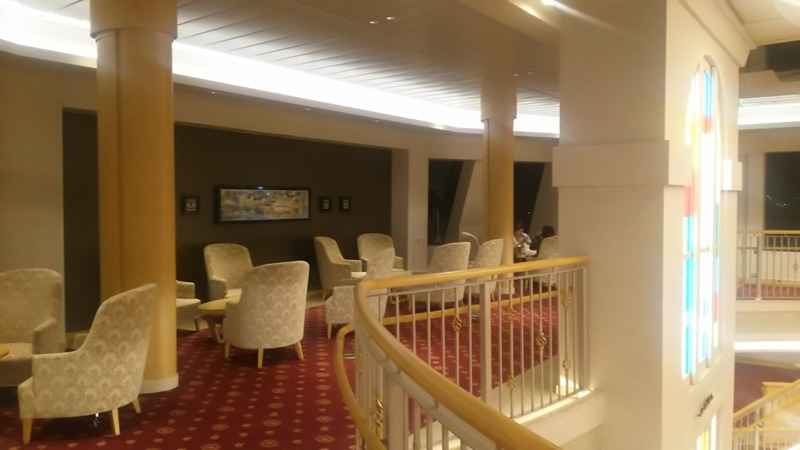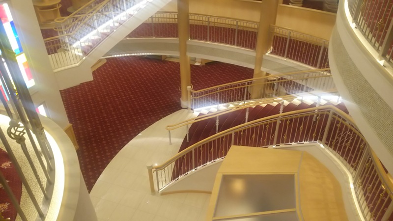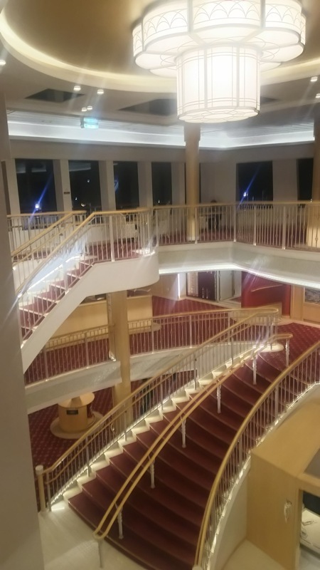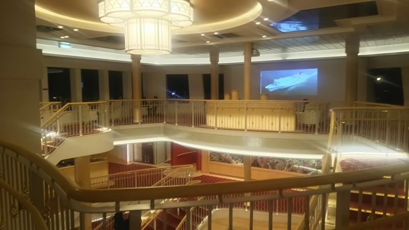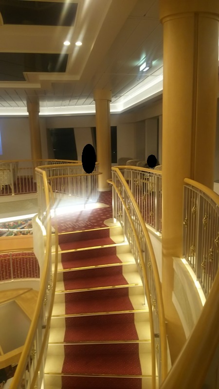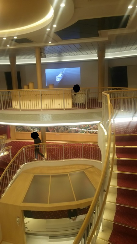 平たい赤い床の所が4階で、乗船口から入ったら遭遇する場所です。