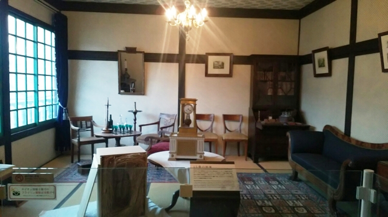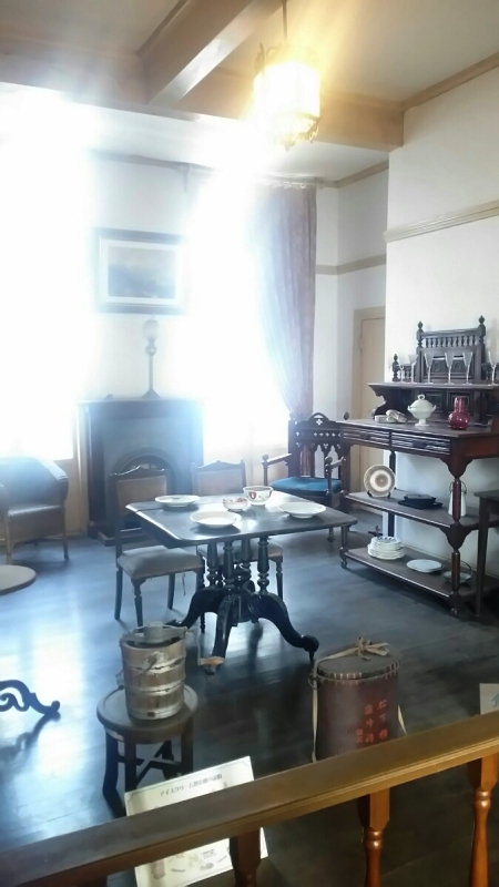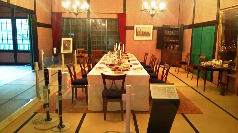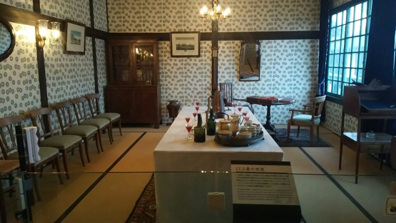 英国式明治洋風建造物である、出島内外倶楽部記念館、又はレストランの二階の写真です。
