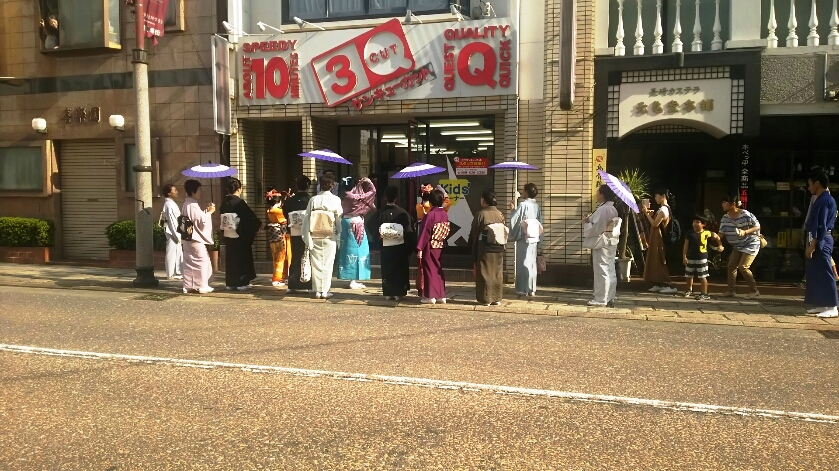 下の写真は、ある家族が着物をレンタルして記念撮影しているところです。