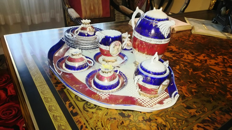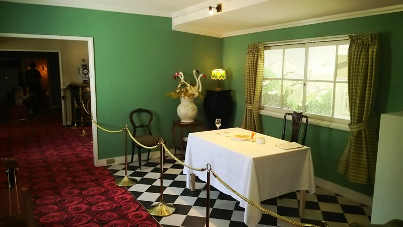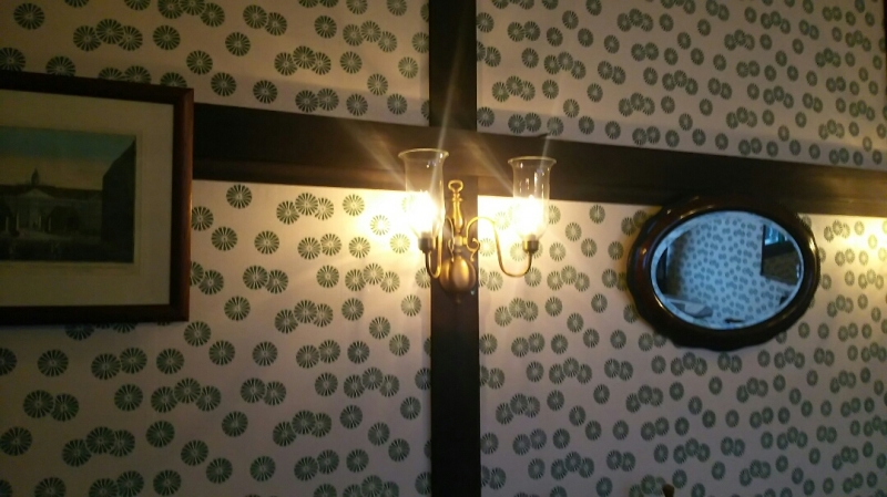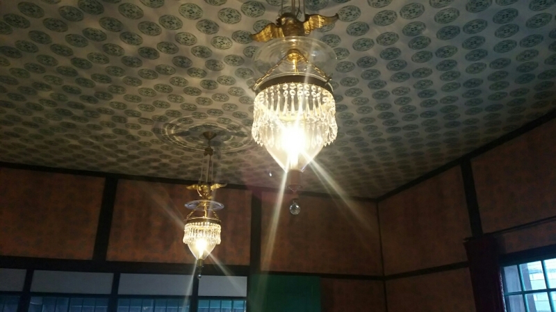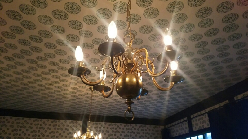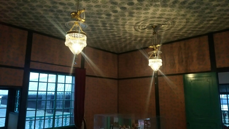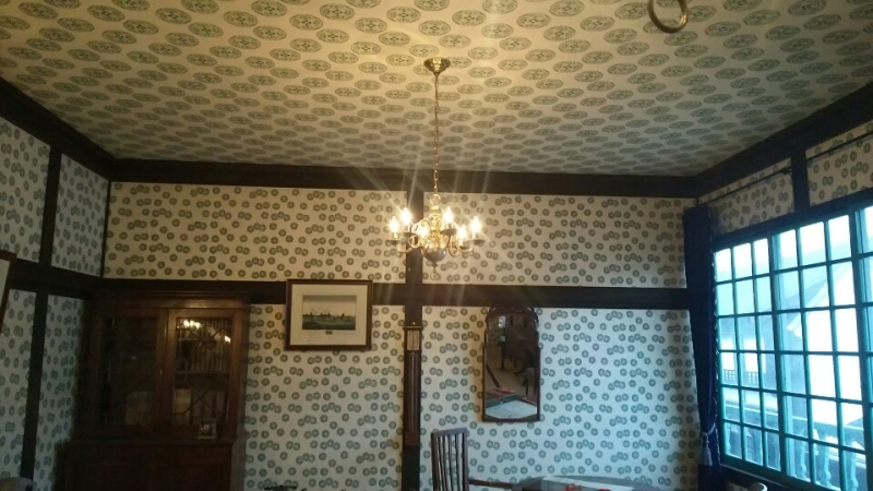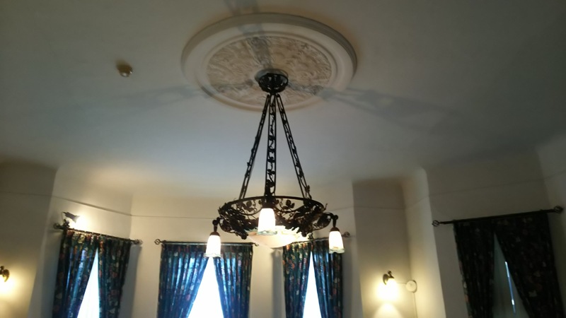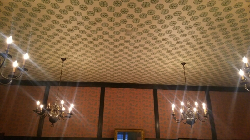 まず、天井の壁紙やシャンデリアを見て下さい。