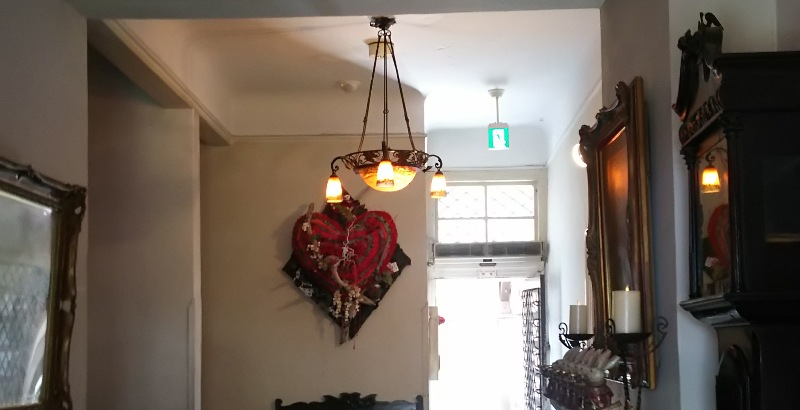 上に鳥の形をしたものの下にシャンデリアとは珍しいなあと思いました。