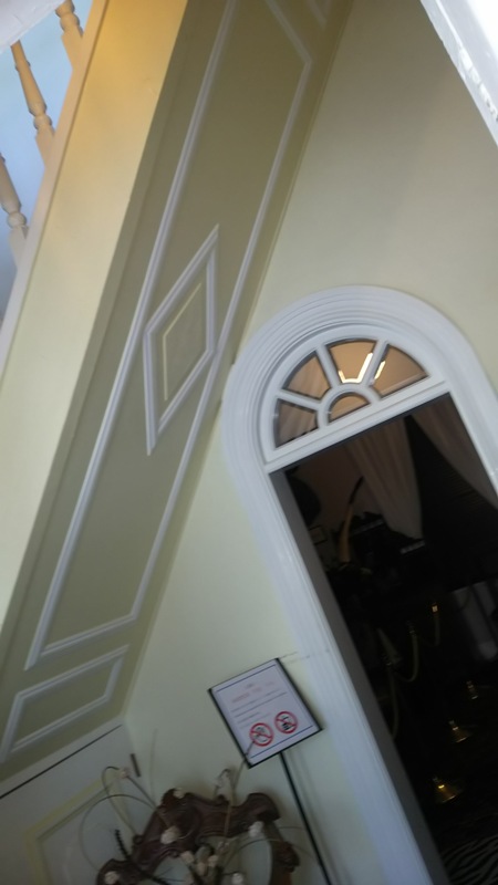 それでは玄関から入りますが、ドアの上が半円形である事や階段の裏側にモールディングしていると言うのは珍しいです。