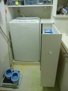 洗濯機の隣にスペースがあり、家内はこれをつくって欲しいとの要望があり、製作しました。