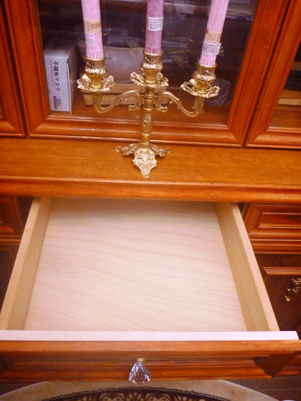 実は、食器棚の中央の引き出しの裏側が下の写真の通り、別々になっていました。