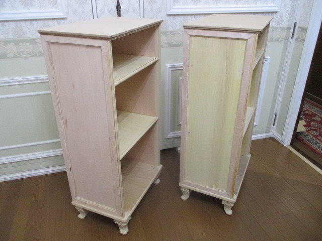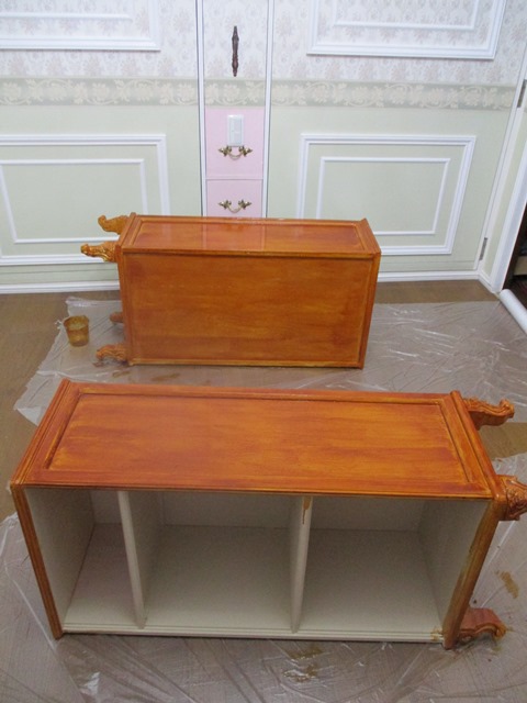 最初に、先の記事で掲載した通り、最初にベージュ色のペイントを塗装して色を統一した上で、更にサンドをかけてから水性ニスを塗装しています。