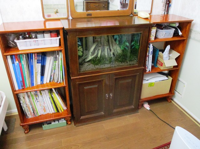 現在、水槽の左右隣に置く本棚を鋭意製作中です。