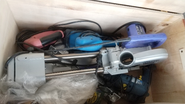 お陰様で、テーブルソー、スライドソーなどの二つの機器専用に木製箱を作りましたが、空いた空間がある為に色んな器具が入れられるので驚きました。