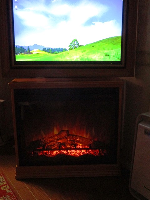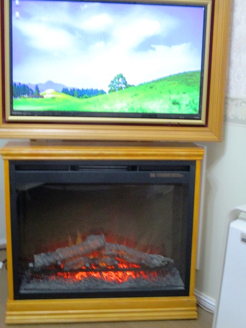 さて、私達の寝室にあたる洋室ですが、テレビと電気暖炉が現在ではこの様になっています。