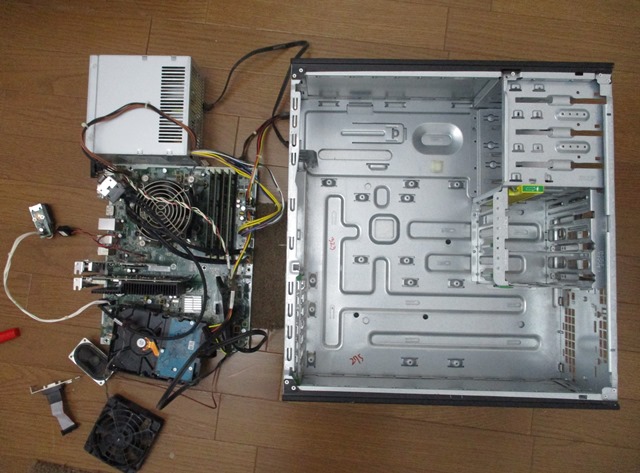 まずは、パソコンケースをカットする必要があり、カットの際に火花が出ますから室内では不向きなので、外でやる必要があります。