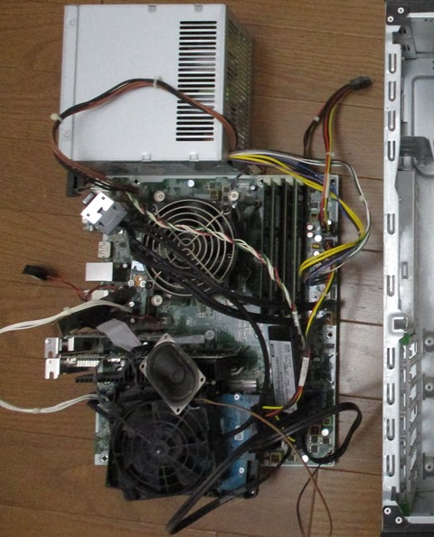 火花が出ますから外は寒いので、玄関の中で水で濡らした新聞紙を敷いて、パソコンケースをディスクグラインターでカットしました。