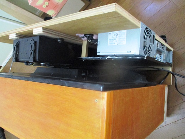 これらの部品のみならば、テレビの裏側に収納出来る様ですが、セットする為のパソコンケースの一部が要ります。