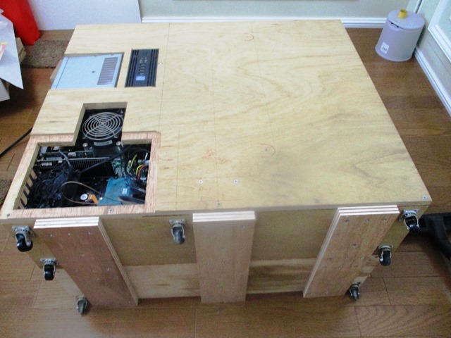 写真や動画の様にはキャビネットを大きくしませんが、なるべくコンパクトにキャスターで移動出来る様にしたいと考えています。